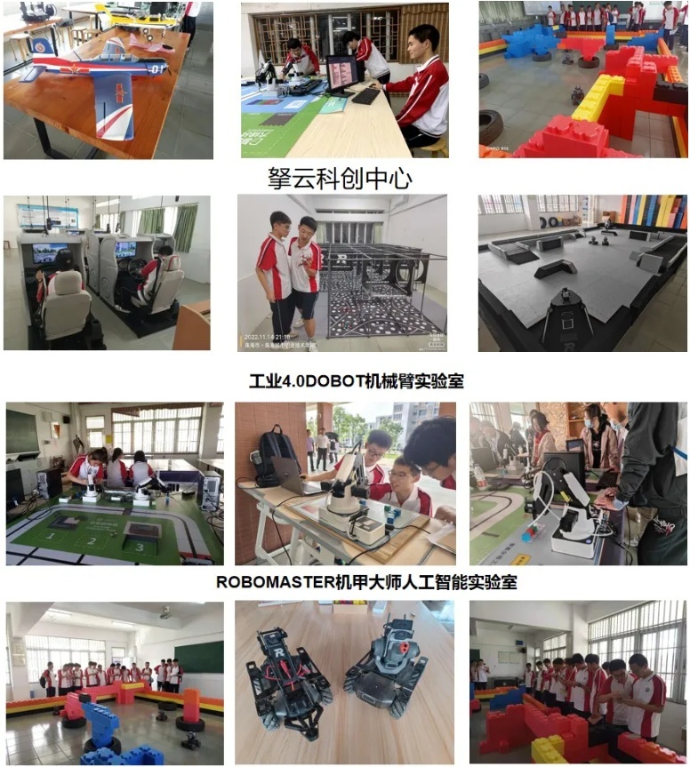 珠海市实验中学科创中心配备DOBOT工业4.0机械臂实验室、FTF无人机实验室、ENJOY AI人工智能实验室等多个专业实验室,还有激光雕刻室、3D打印室等一应俱全。